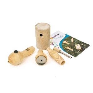 Caixa com 5 chamarizes de sopro